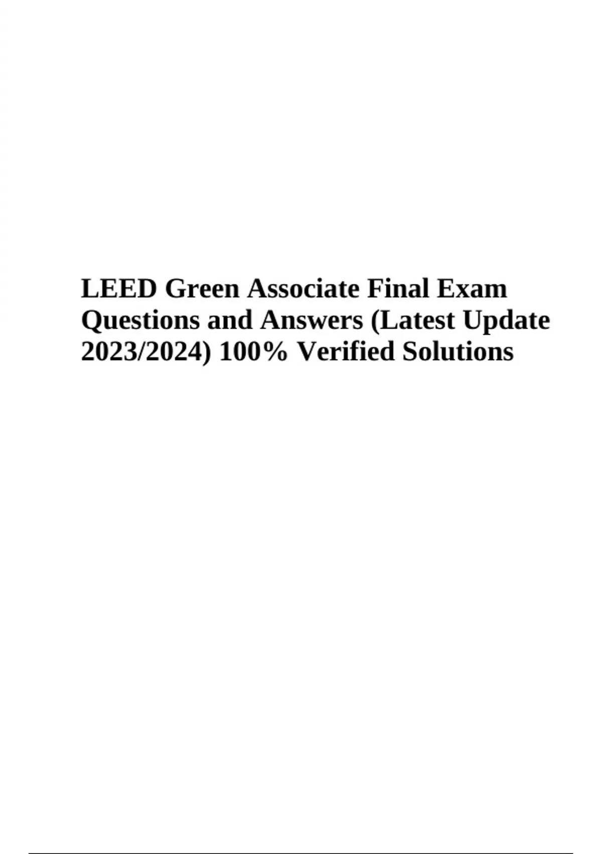 LEED Green Associate Final Exam Questions and Answers (Latest Update 2023/2024) 100% Verified Solutions