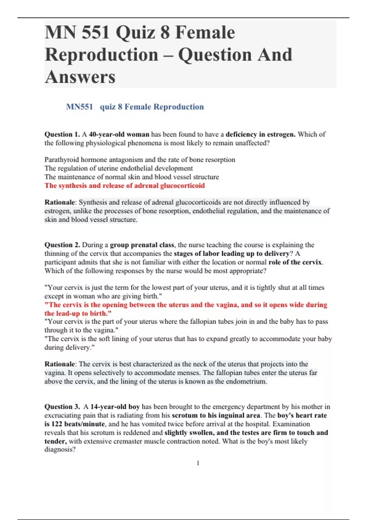 MN 551 Quiz 8 Female Reproduction – Question And Answers
