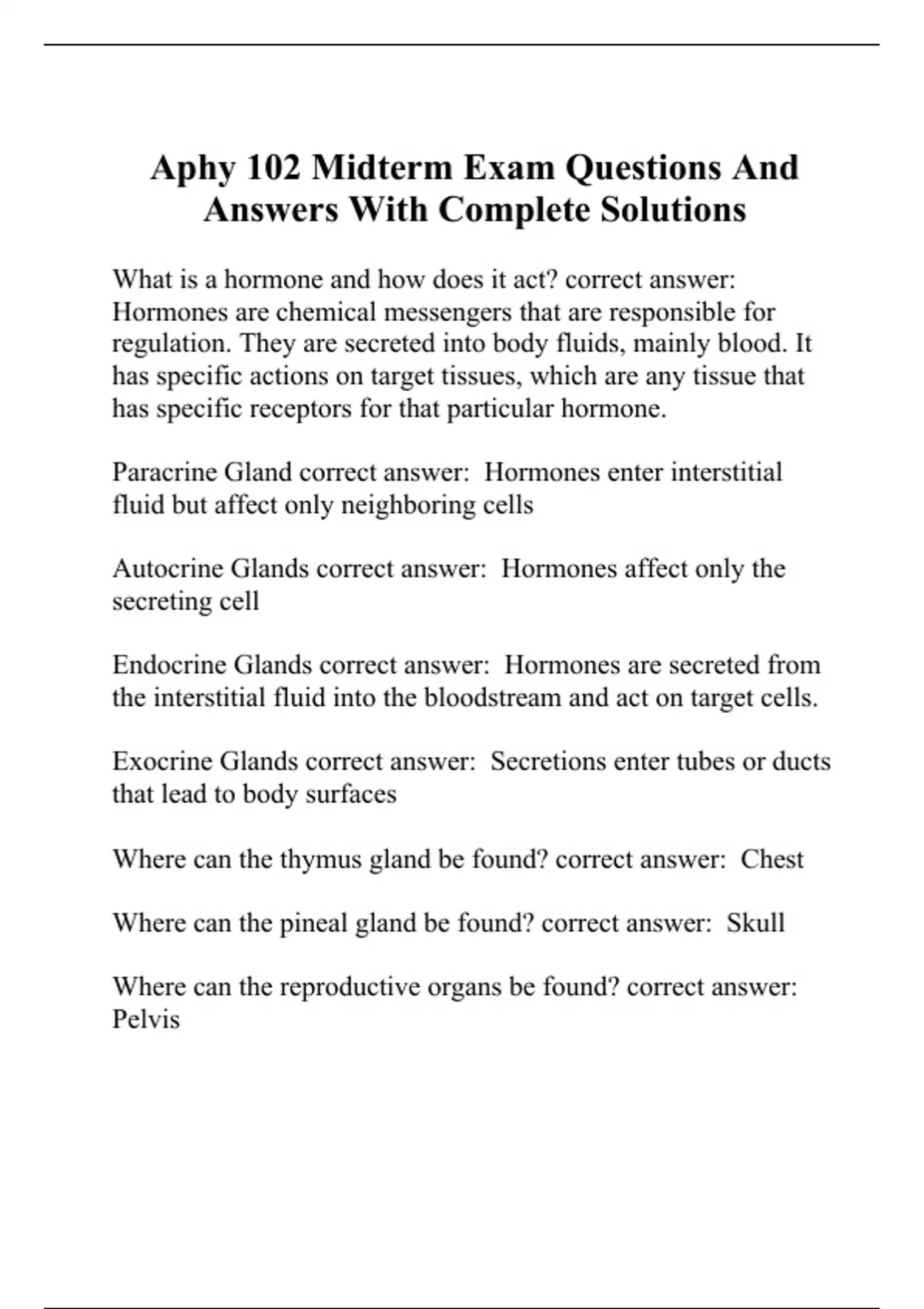 Aphy 102 Midterm Exam Questions And Answers With Complete Solutions