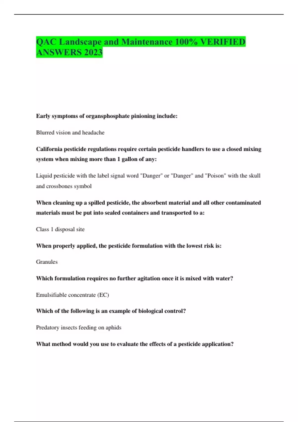 QAC Landscape and Maintenance 100% VERIFIED ANSWERS 2023