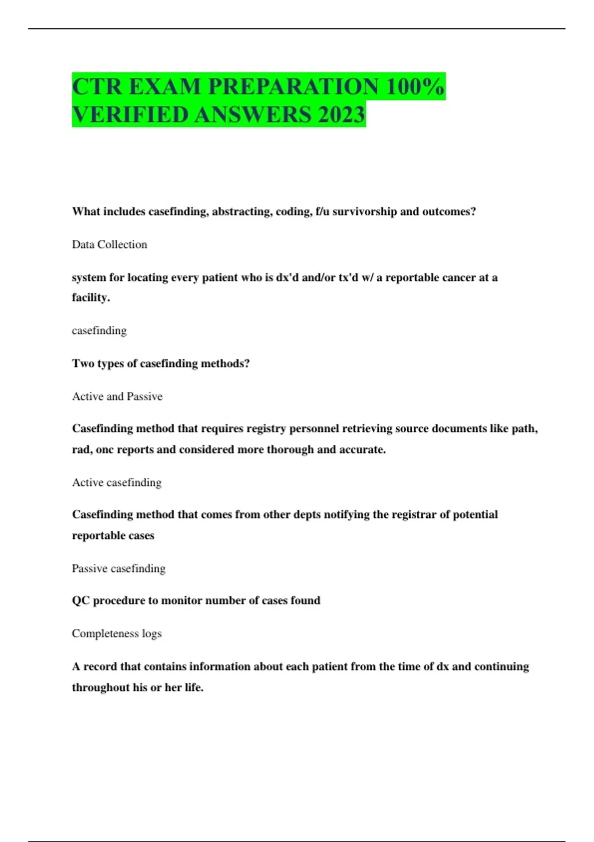 CTR EXAM PREPARATION 100% VERIFIED ANSWERS 2023