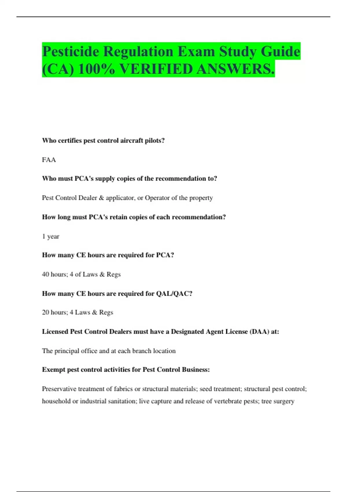Pesticide Regulation Exam Study Guide (CA) 100% VERIFIED ANSWERS