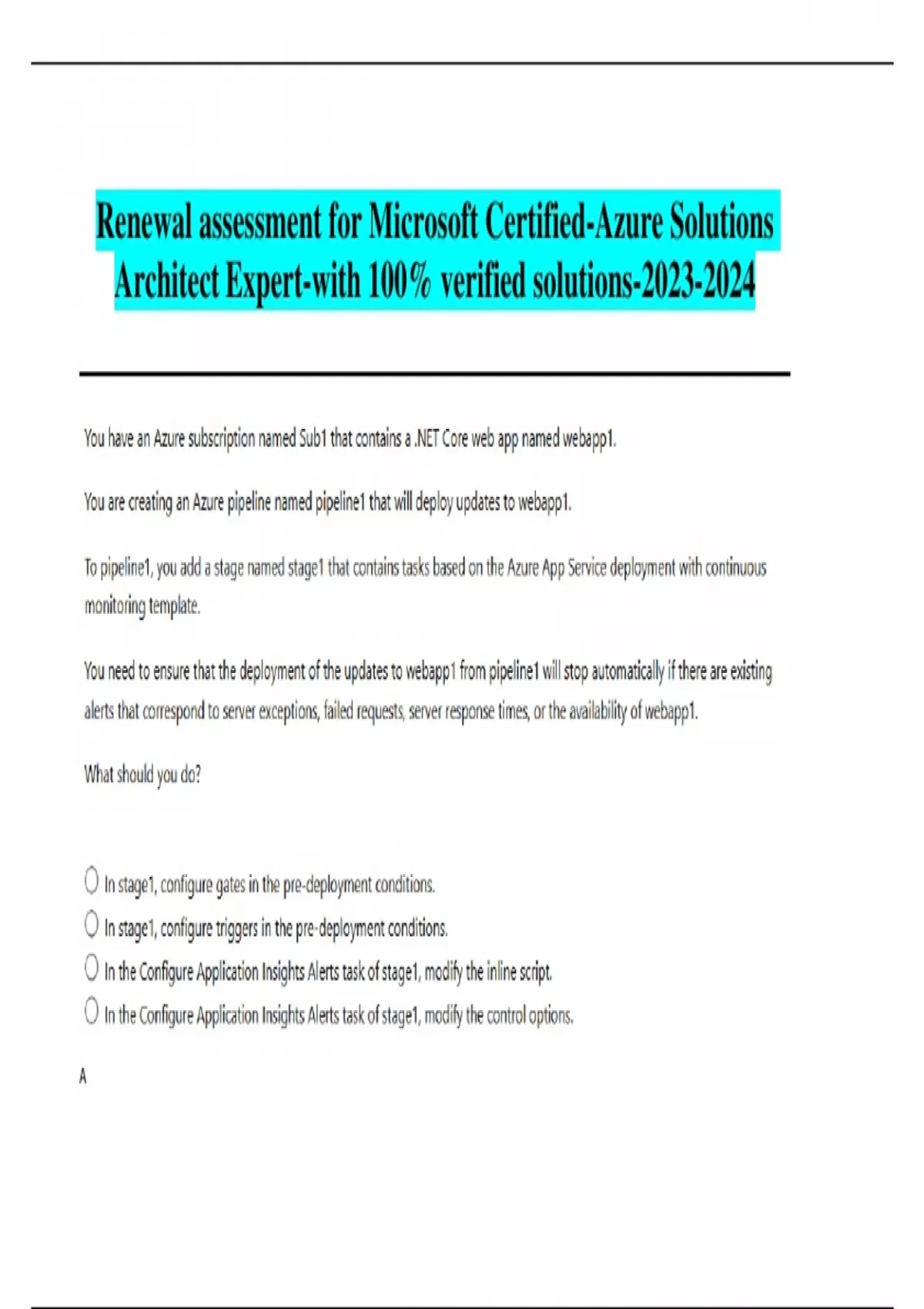 Renewal assessment for Microsoft Certified-Azure Solutions Architect Expert-with 100% verified solutions-