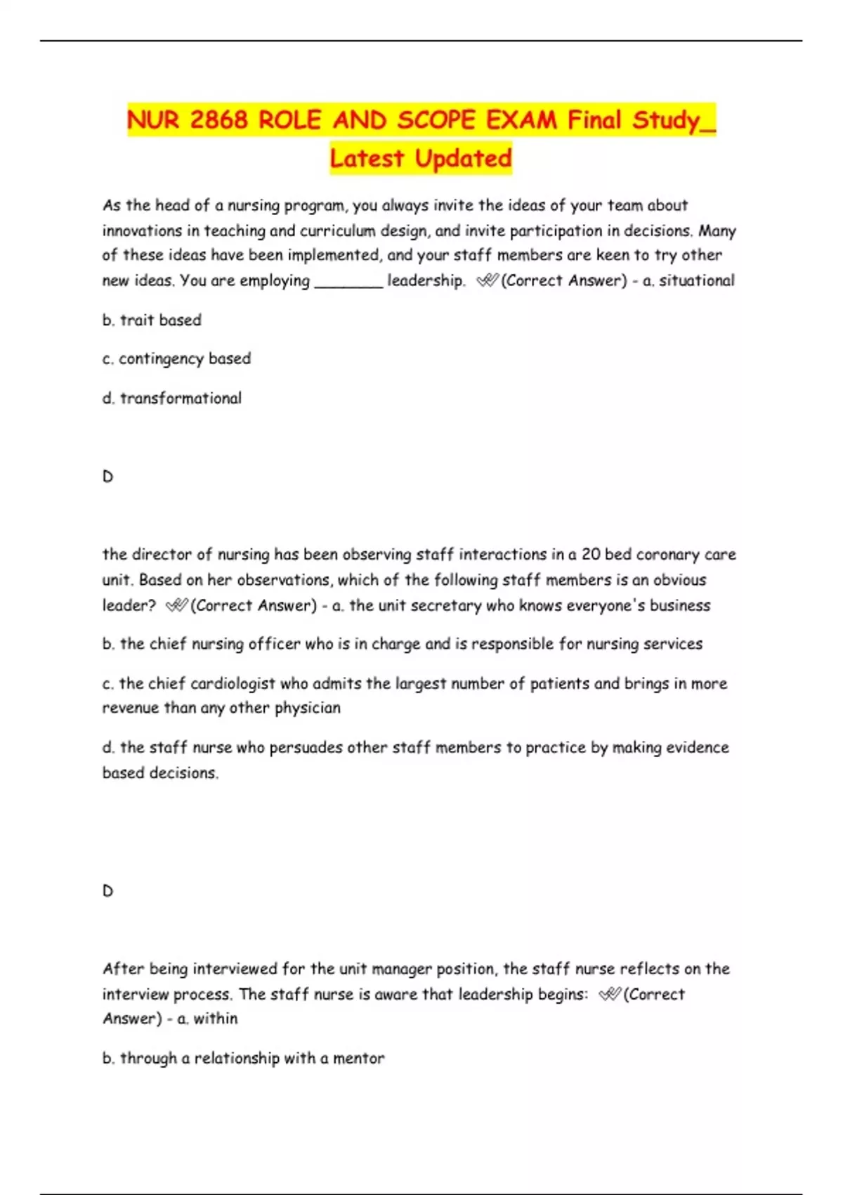 NUR 2868 ROLE AND SCOPE EXAM Final Study_Latest Updated