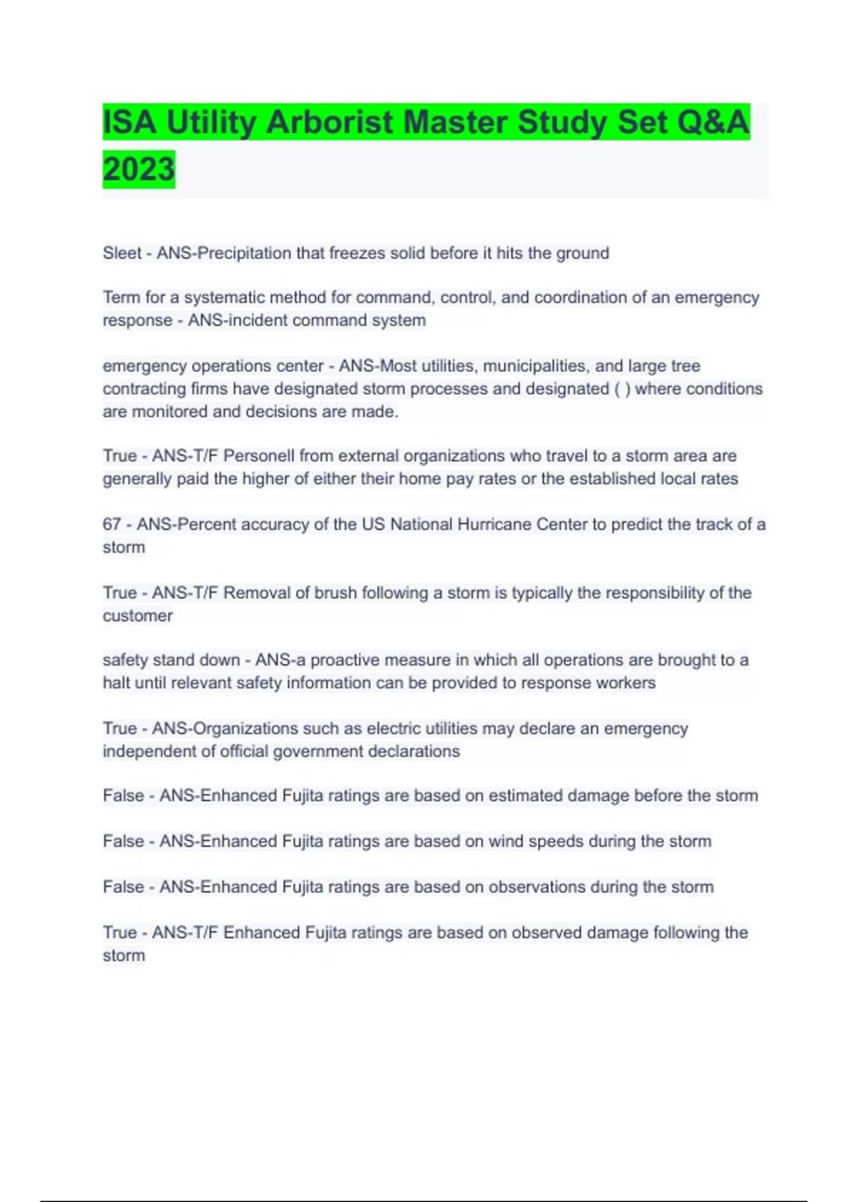 ISA Utility Arborist Master Study Set Q&A 2023