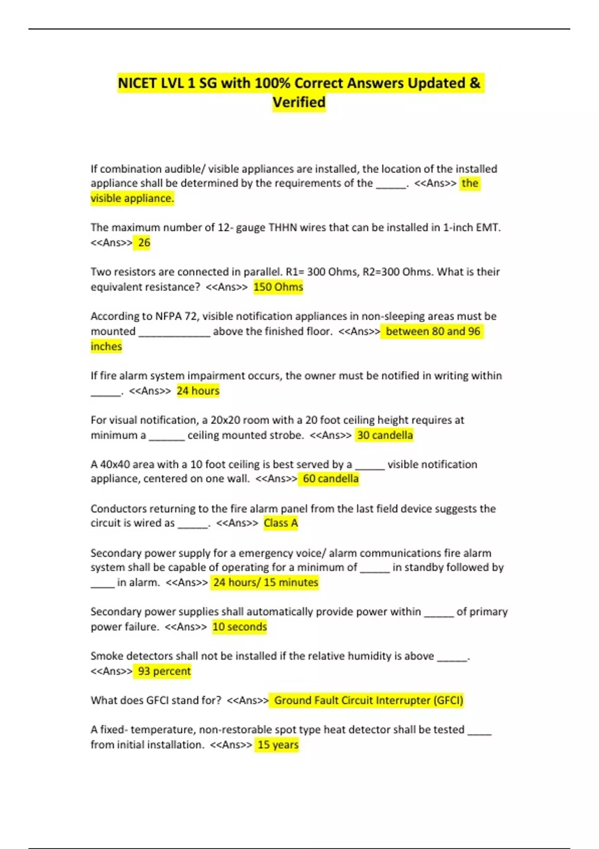 NICET LVL 1 SG with 100% Correct Answers Updated & Verified