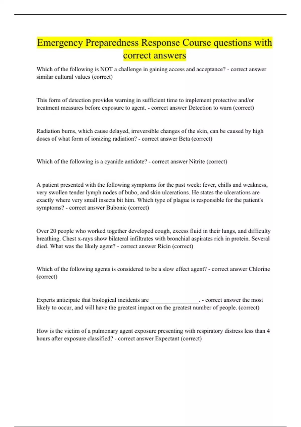 Emergency Preparedness Response Course questions with correct answers