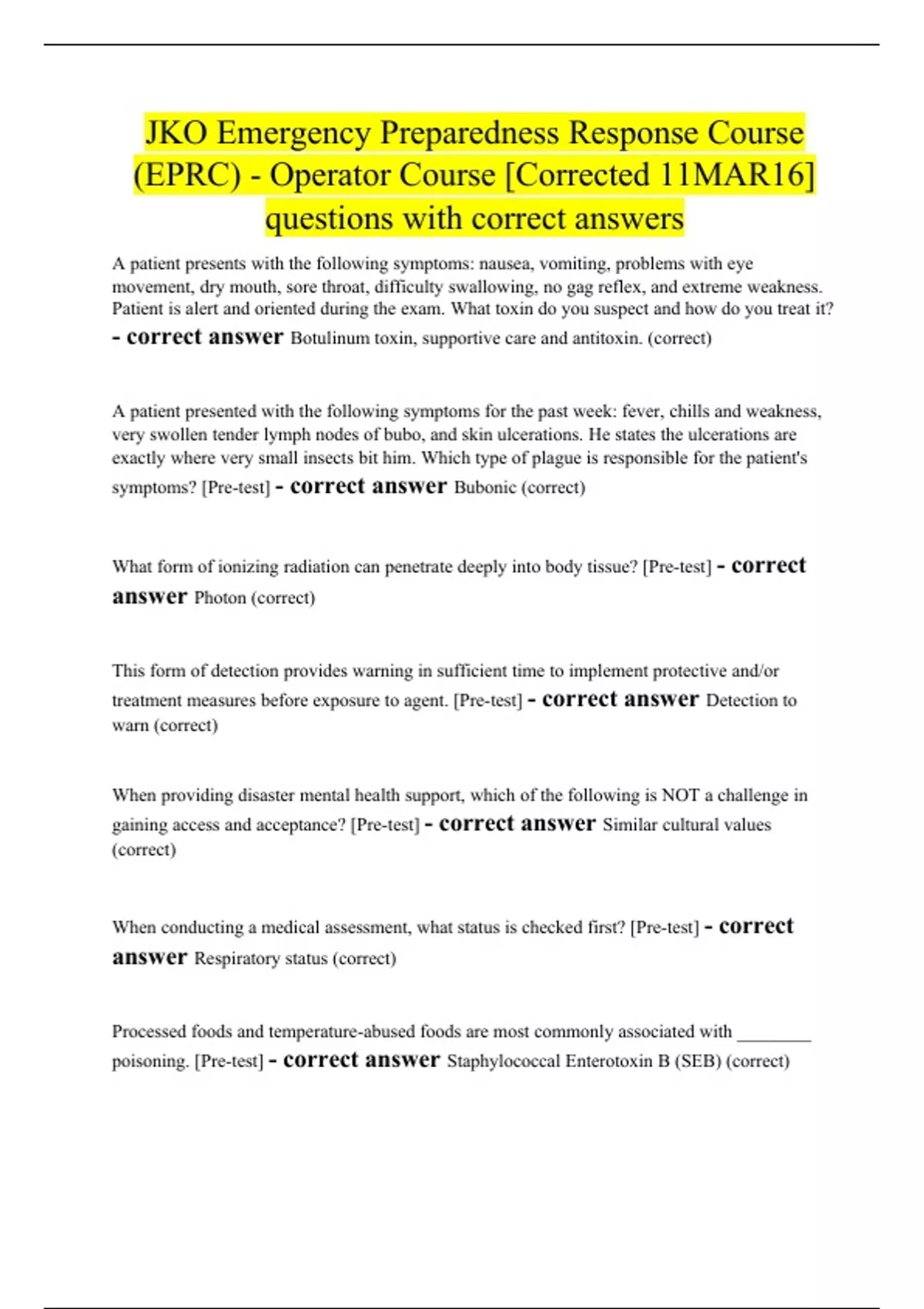JKO Emergency Preparedness Response Course (EPRC) - Operator Course [Corrected 11MAR16] questions with correct answers