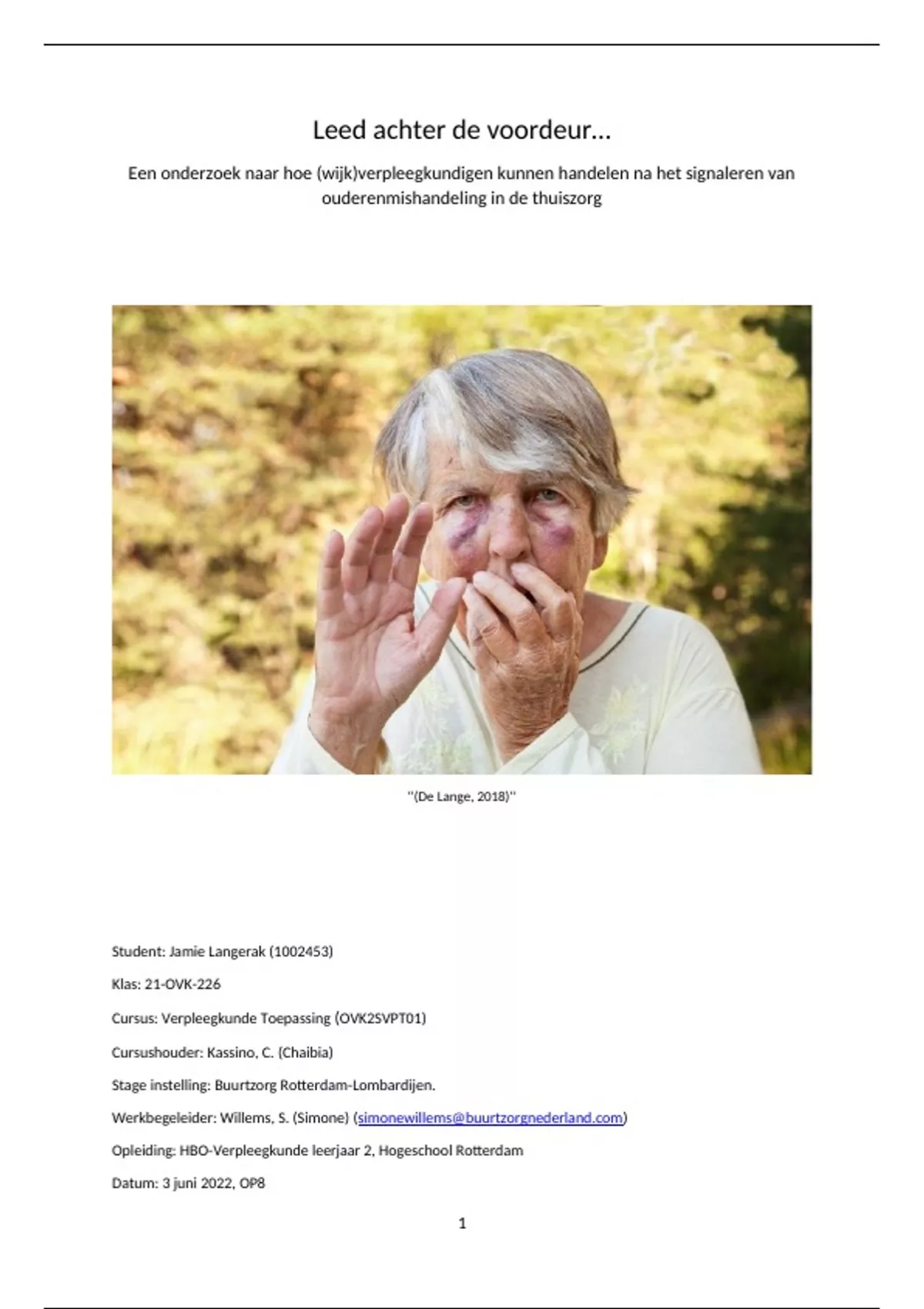 Hogeschool Rotterdam. Ik loop momenteel voor het eerst stage in de thuiszorg bij Buurtzorg