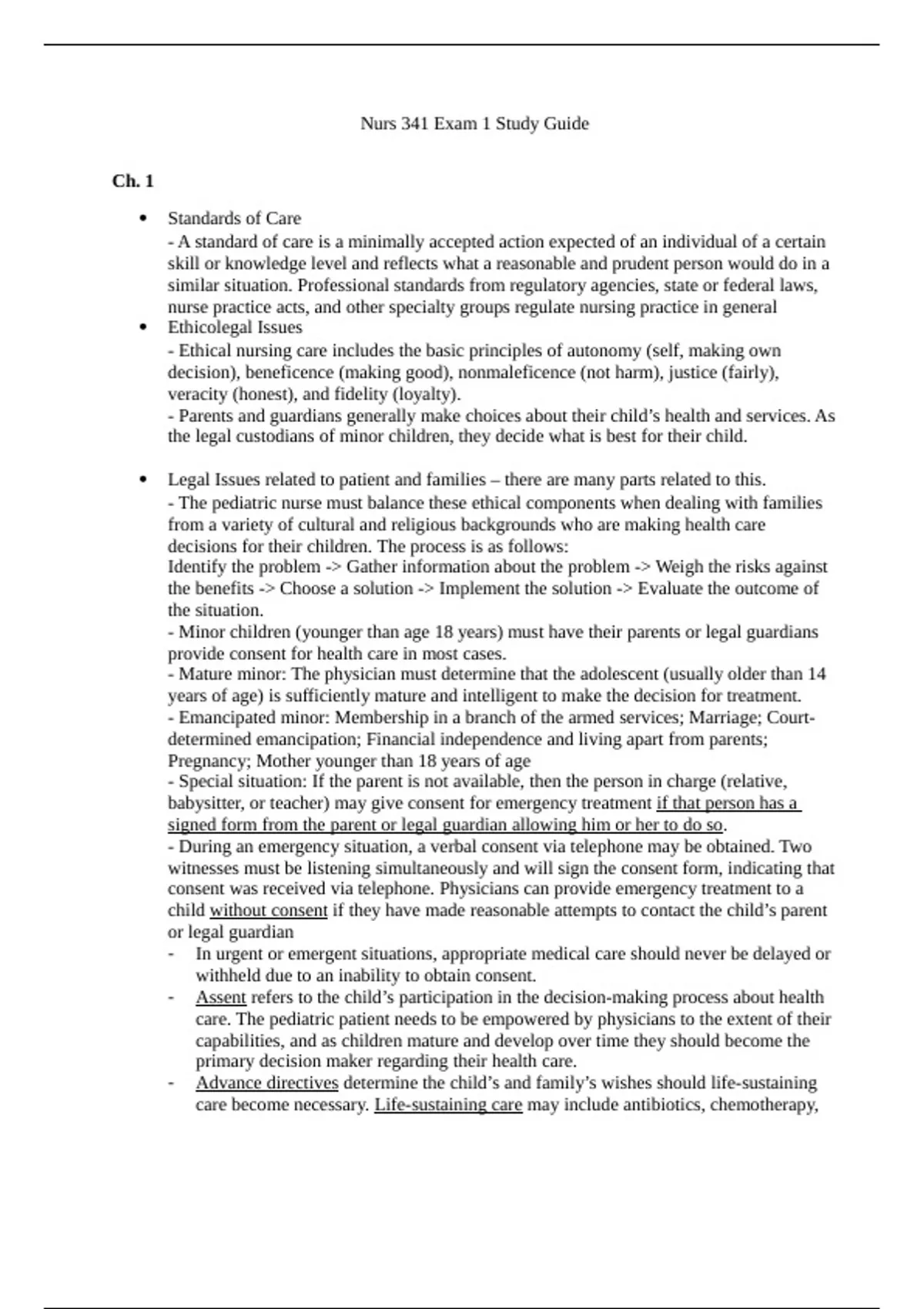 Legal Issues related to patient and families – there are many parts related to this.
