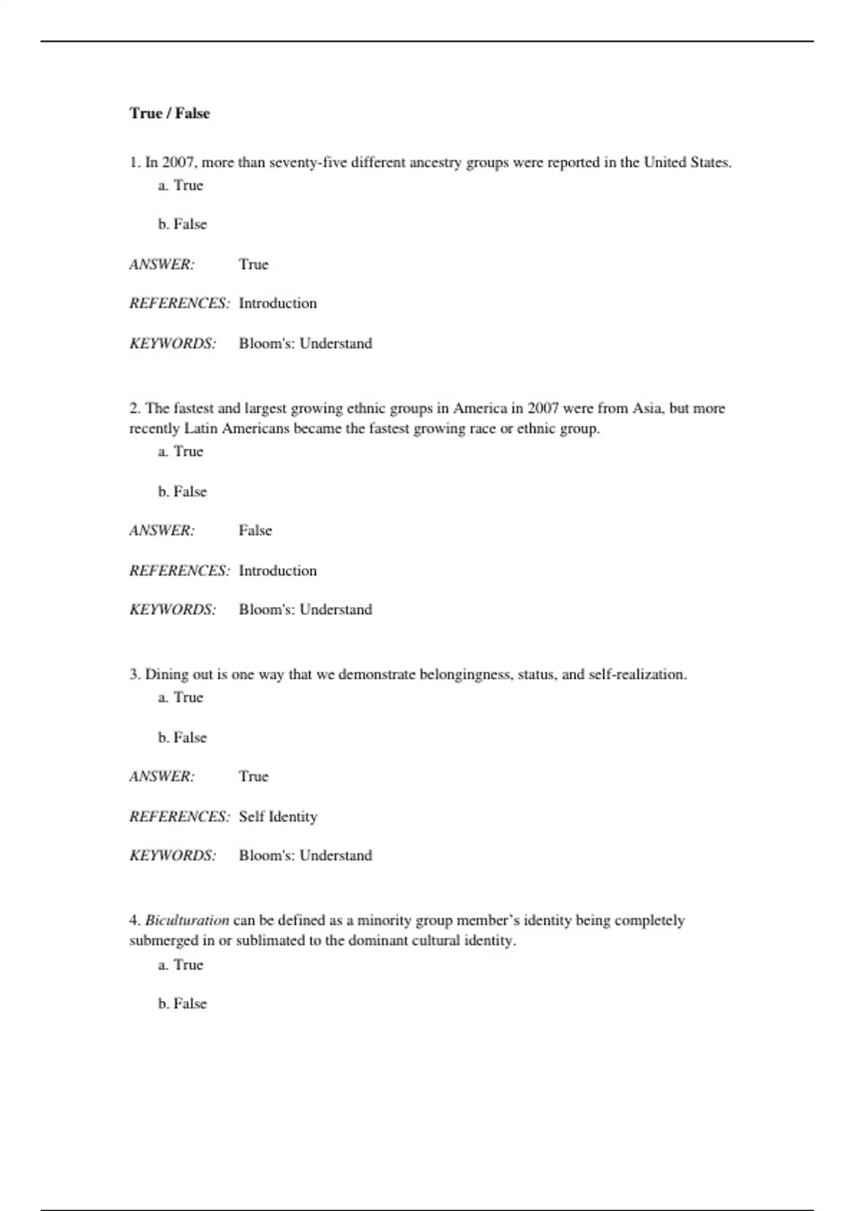4. Biculturation can be defined as a minority group member’s identity being completely