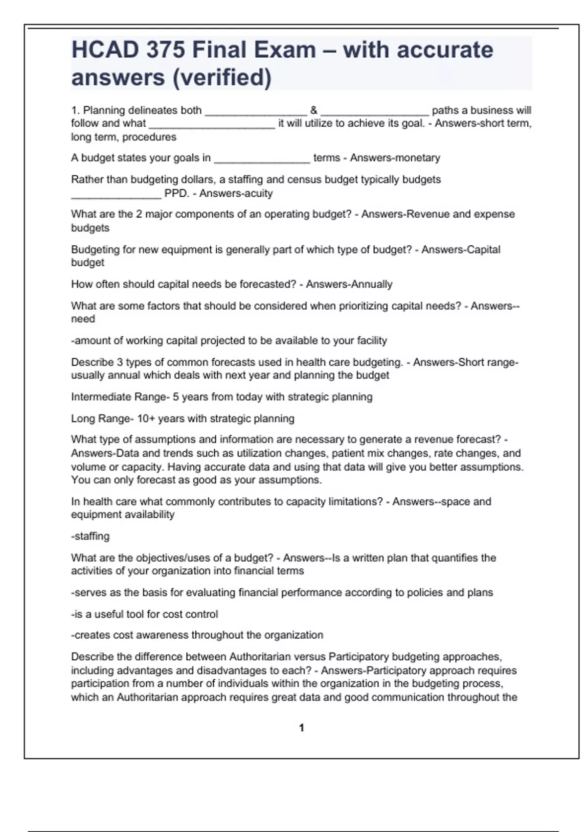 HCAD 375 Final Exam – with accurate answers (verified)Graded A