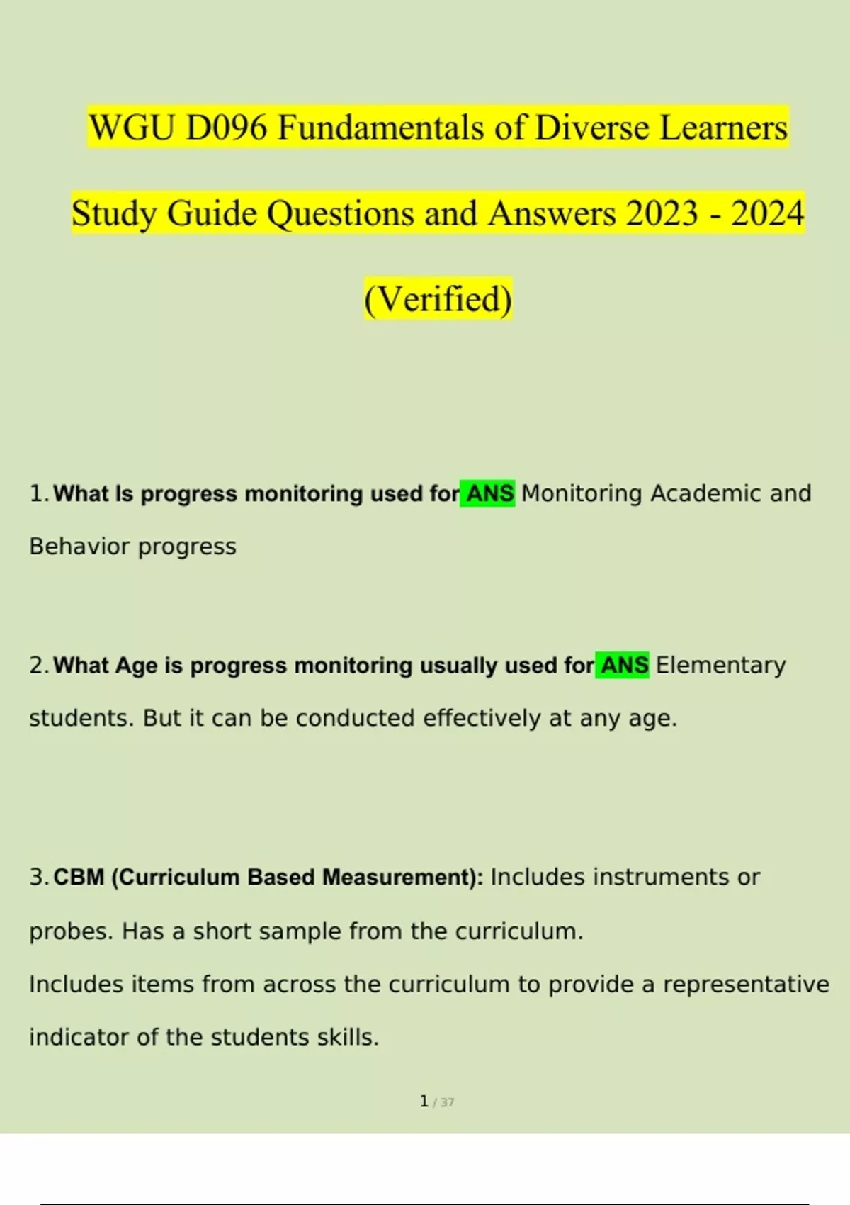 WGU D096 Fundamentals of Diverse Learners Study Guide Questions and Answers (Verified) WGU D096 Fundamentals of Diverse Learners Study Guide Questions and Answers (Verified)
