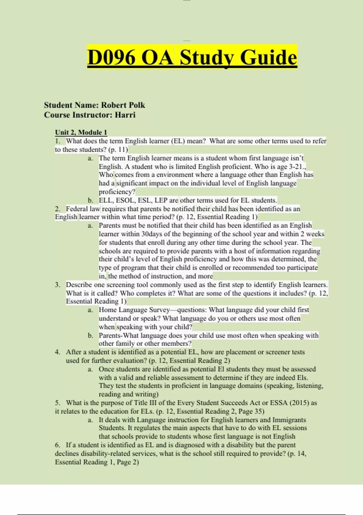 WGU D096 Fundamentals Of Diverse Learners