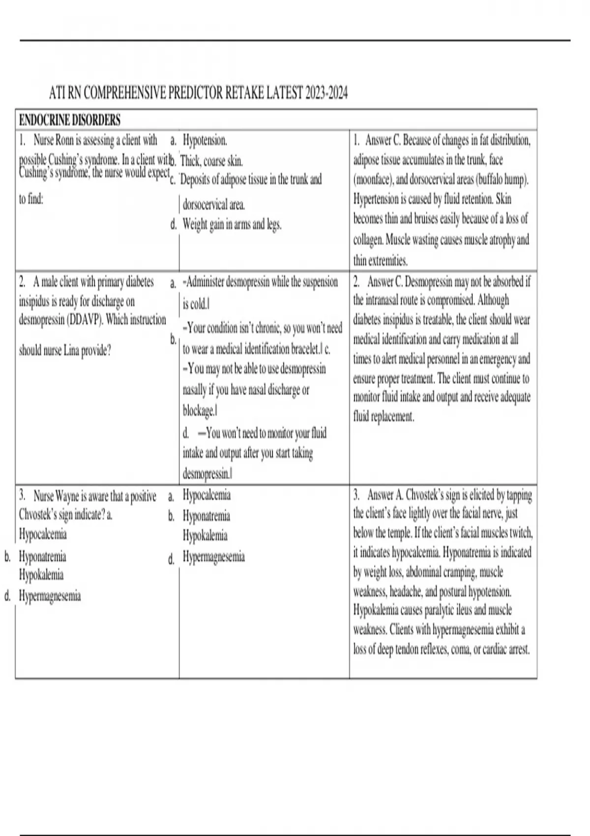 ATI RN COMPREHENSIVE PREDICTOR RETAKE LATEST ENDOCRINE DISORDERS