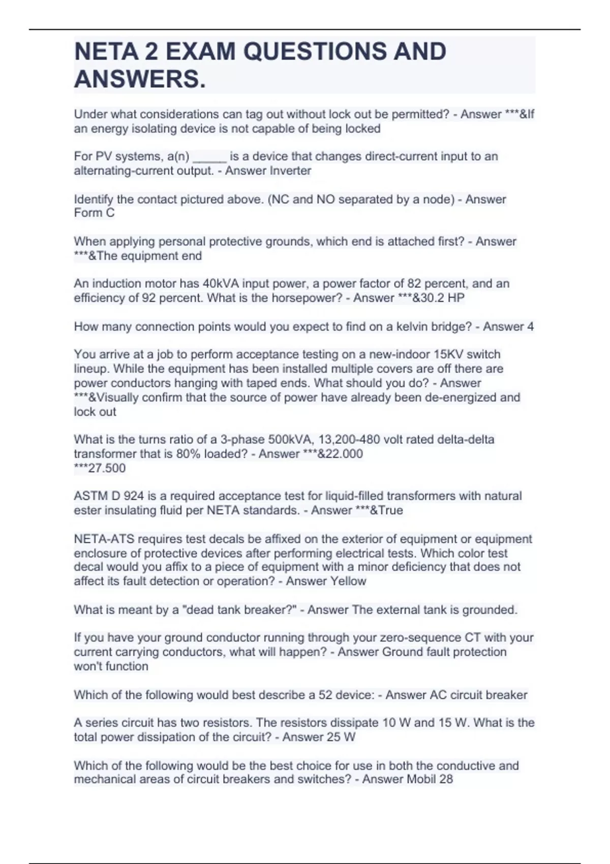 NETA 2 EXAM QUESTIONS AND ANSWERS.