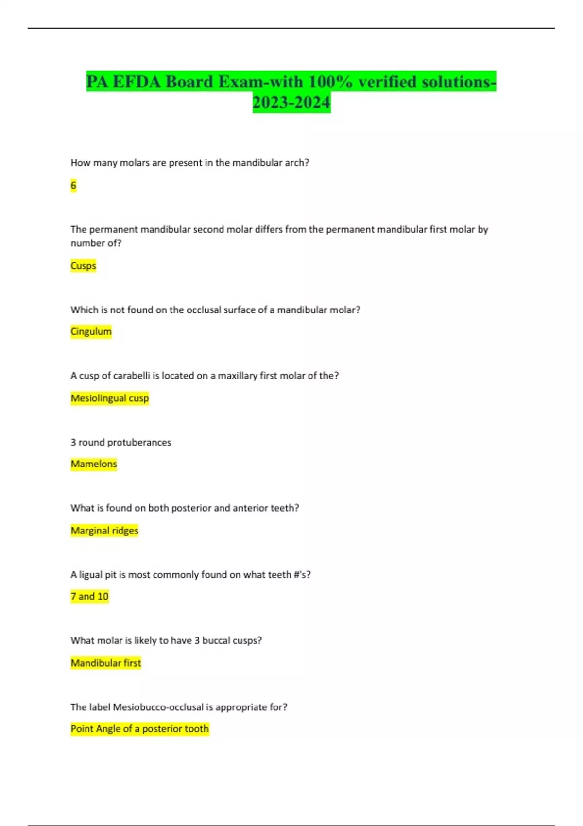 PA EFDA Board Exam-with 100% verified solutions-