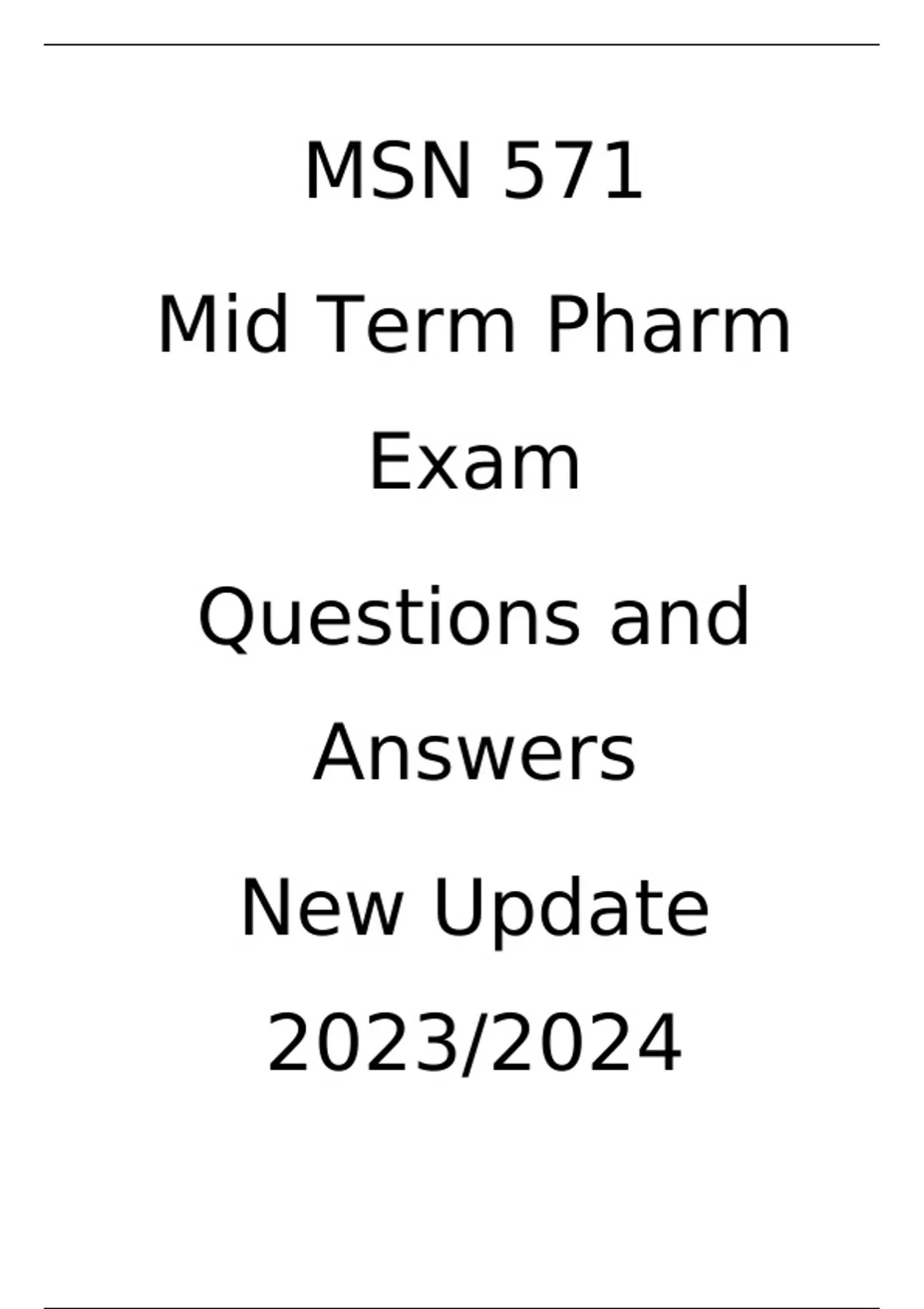 MSN 571 Mid Term Pharm Exam Questions and Answers New Update 2023/2024