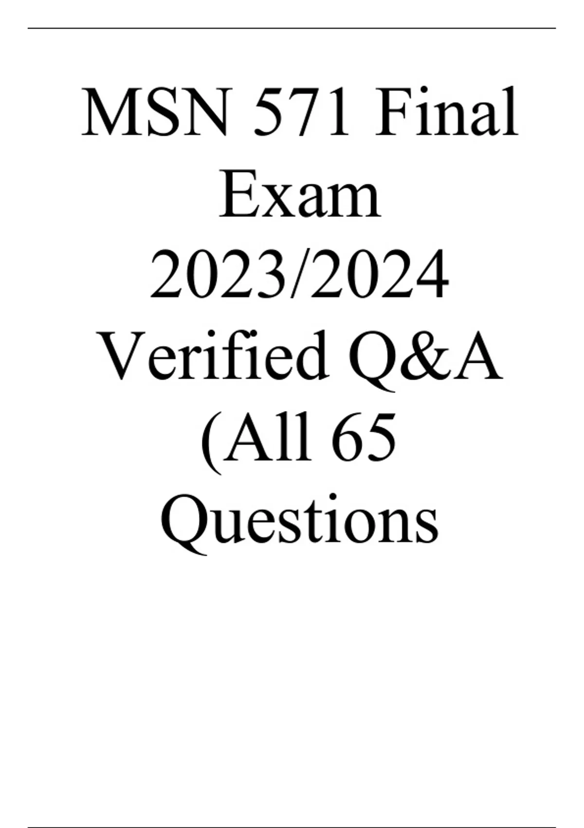 MSN 571 Final Exam 2023/2024 Verified Q&A (All 65 Questions)