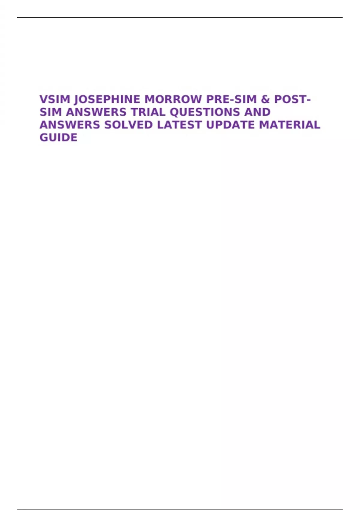 VSIM JOSEPHINE MORROW PRE-SIM & POST-SIM ANSWERS TRIAL QUESTIONS AND ANSWERS SOLVED LATEST UPDATE MATERIAL GUIDE