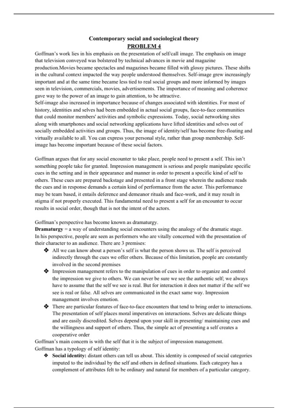 Goffman’s work lies in his emphasis on the presentation of self/call image. The emphasis on image