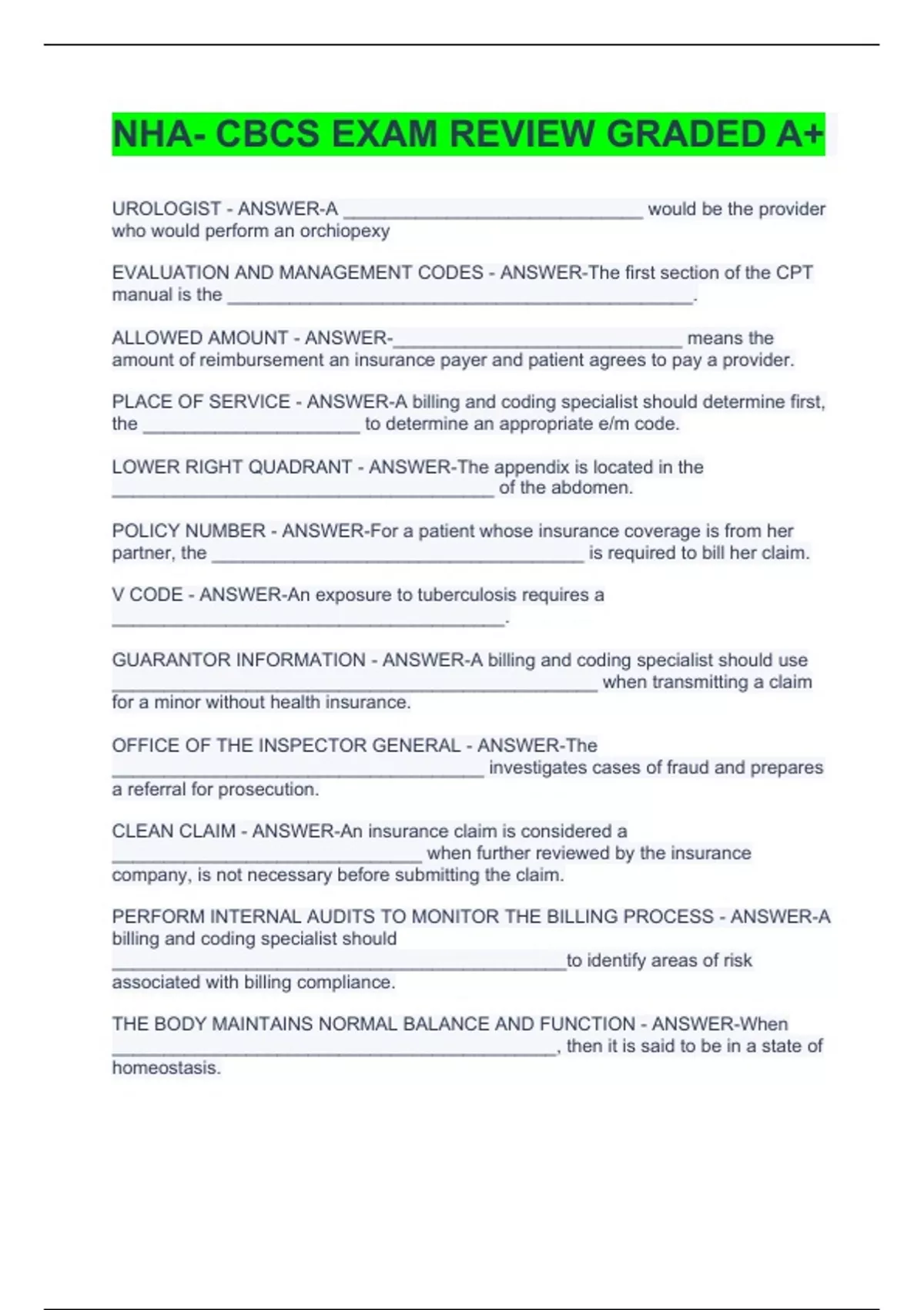 NHA- CBCS EXAM REVIEW GRADED A+