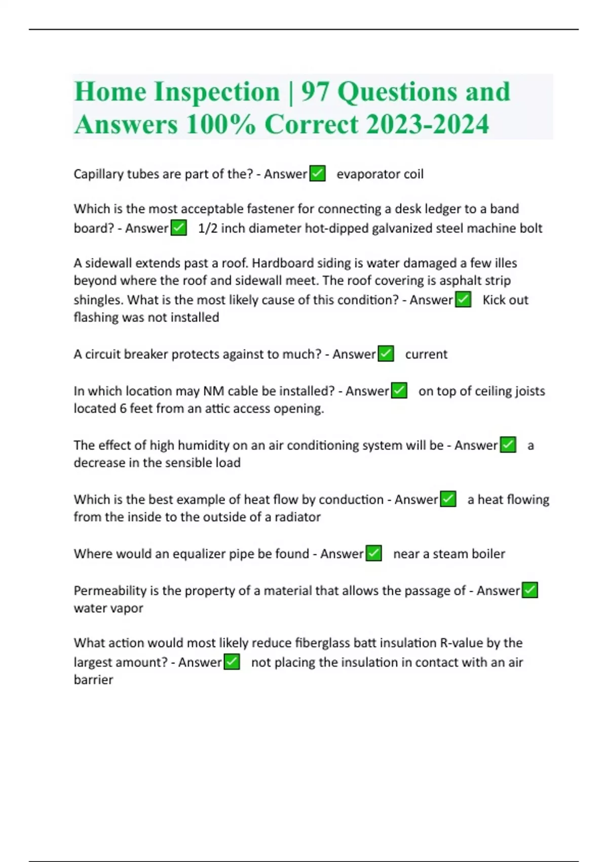 home inspection | 97 questions and answers 100 co