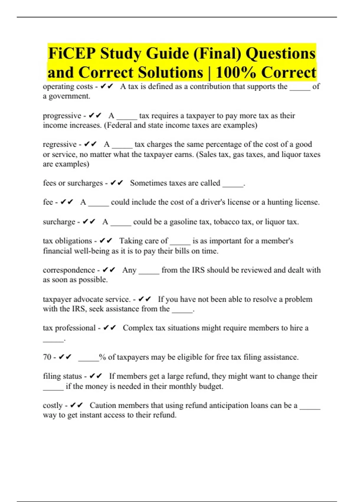 FiCEP Study Guide (Final) Questions and Correct Solutions | 100% Correct