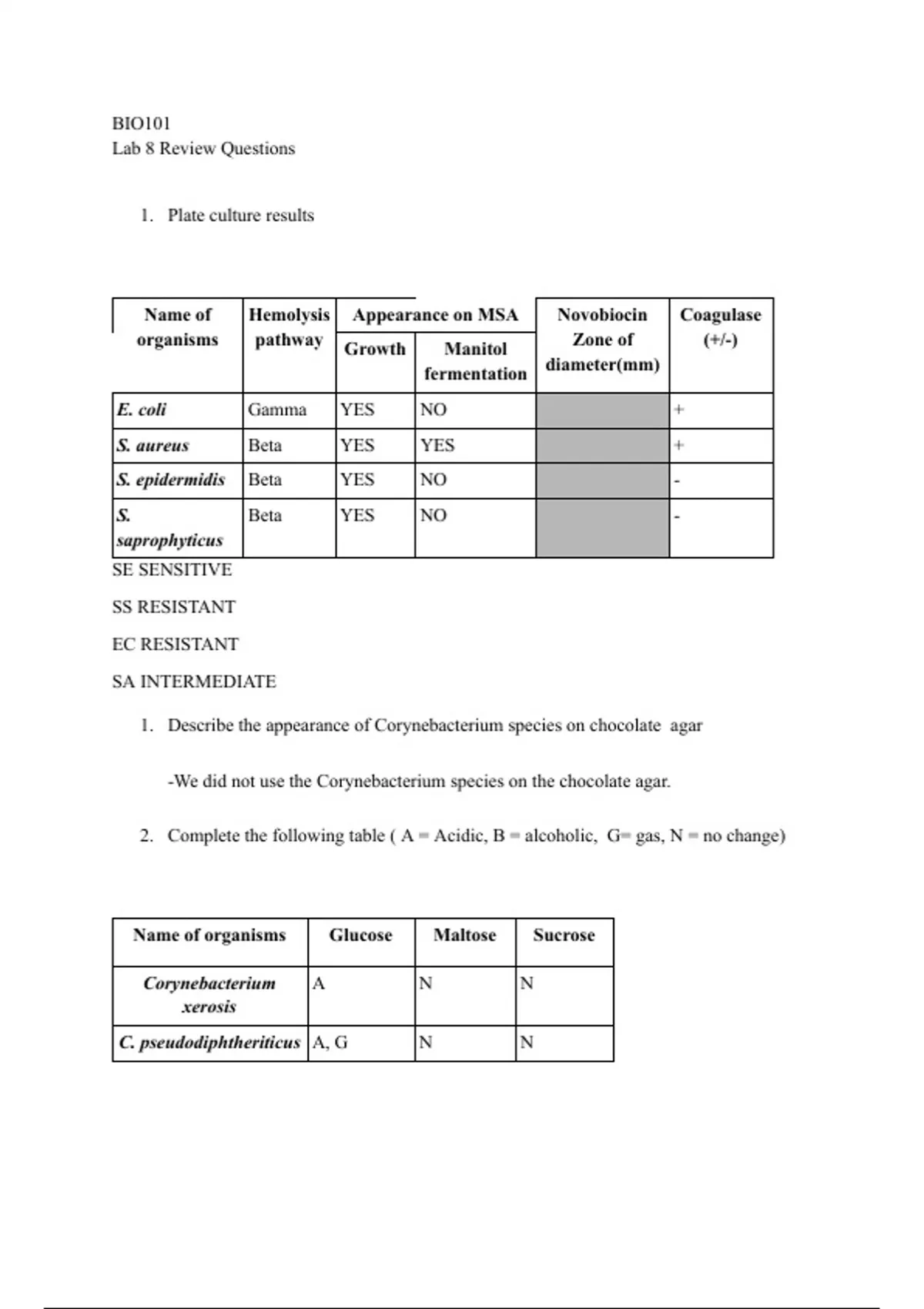 Describe the appearance of Corynebacterium species on chocolate agar What are the major characteristics of staphylococcus group List the 4 subgroups of staphylococci group