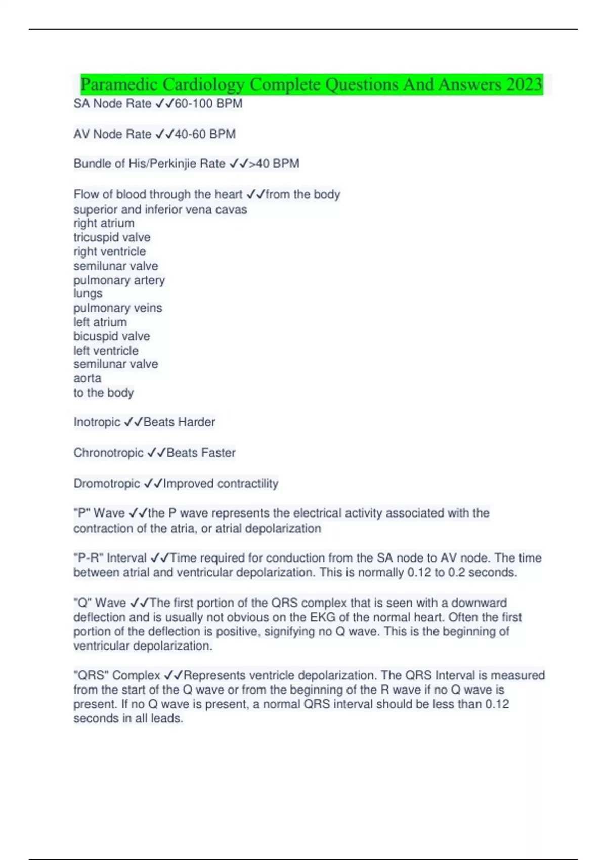 Paramedic Cardiology Complete Questions And Answers 2023 Paramedic Cardiology Complete Questions And Answers 2023