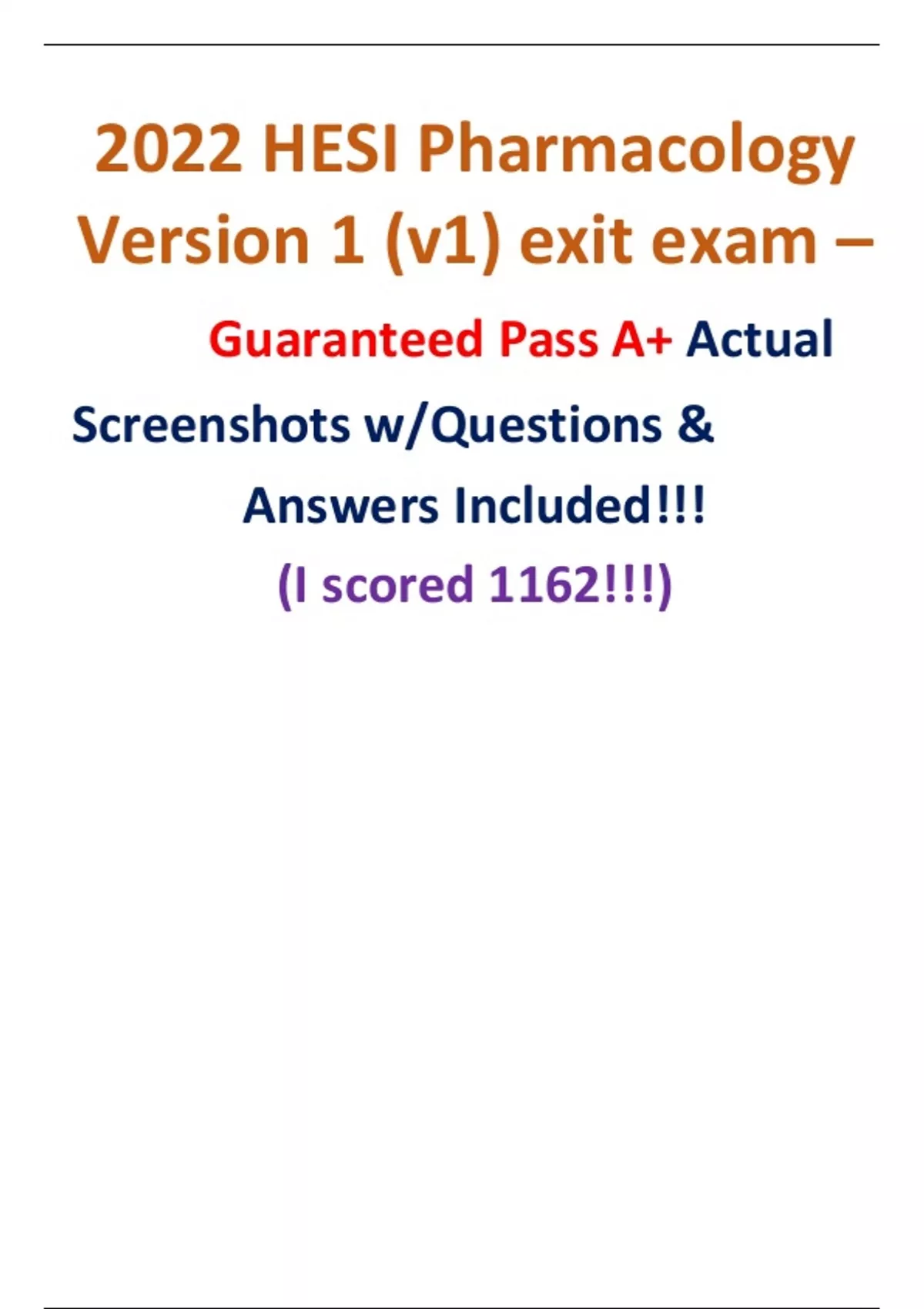 2022 HESI Pharmacology Version 1 (v1) exit exam – Guaranteed Pass A+ Actual Screenshots w/Questions & Answers Included!!!