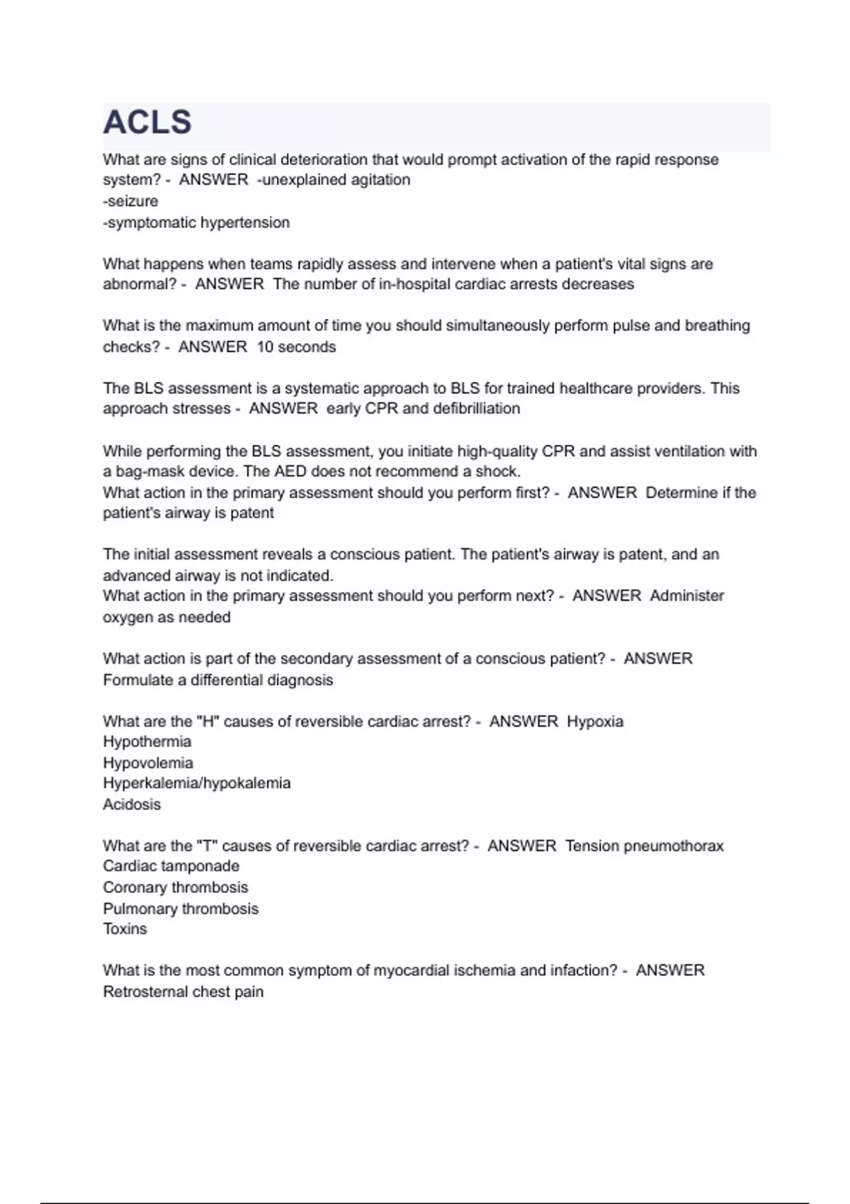 ACLS (QUESTIONS & ANSWERS VERIFIED 100%)LATEST UPDATED 2023