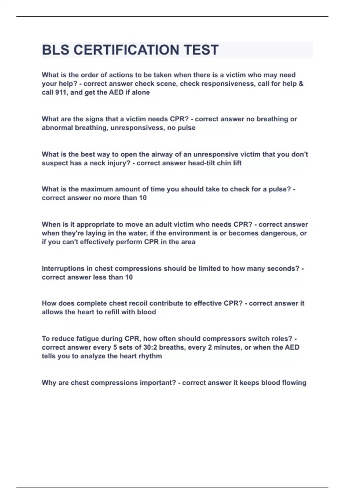 BLS CERTIFICATION TEST|UPDATED&VERIFIED|100% SOLVED|GUARANTEED SUCCESS