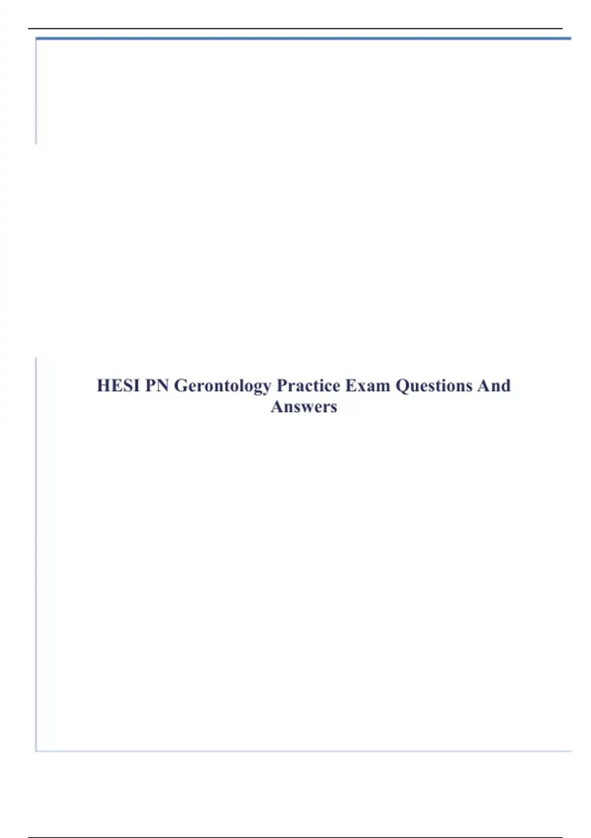 HESI PN Gerontology Practice Exam Questions And Answers