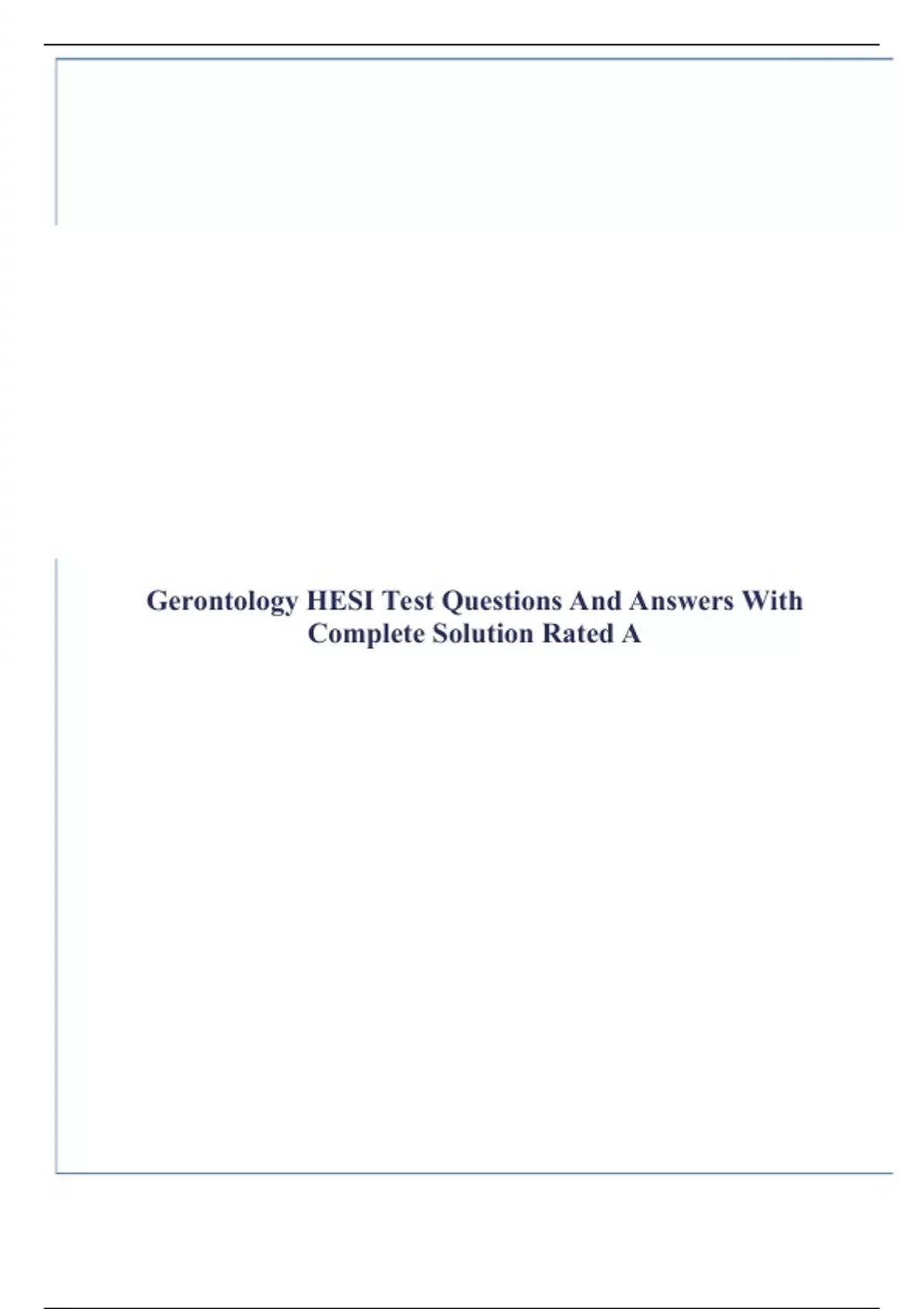 Gerontology HESI Test Questions And Answers With Complete Solution Rated A