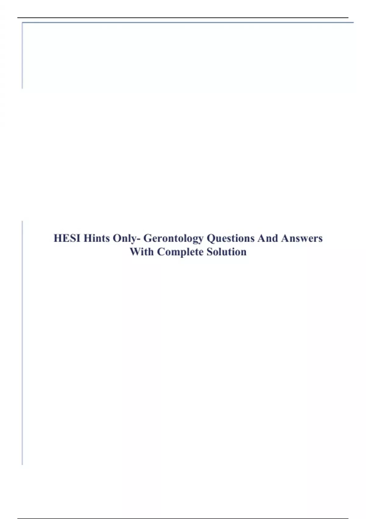 HESI Hints Only- Gerontology Questions And Answers With Complete Solution