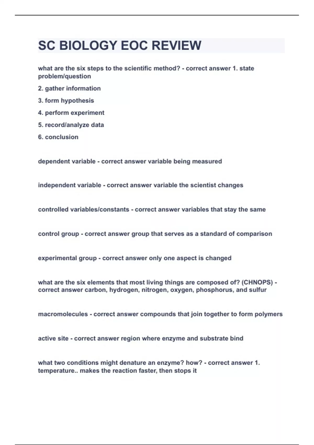 SC BIOLOGY EOC REVIEW|UPDATED&VERIFIED|100% SOLVED|GUARANTEED SUCCESS