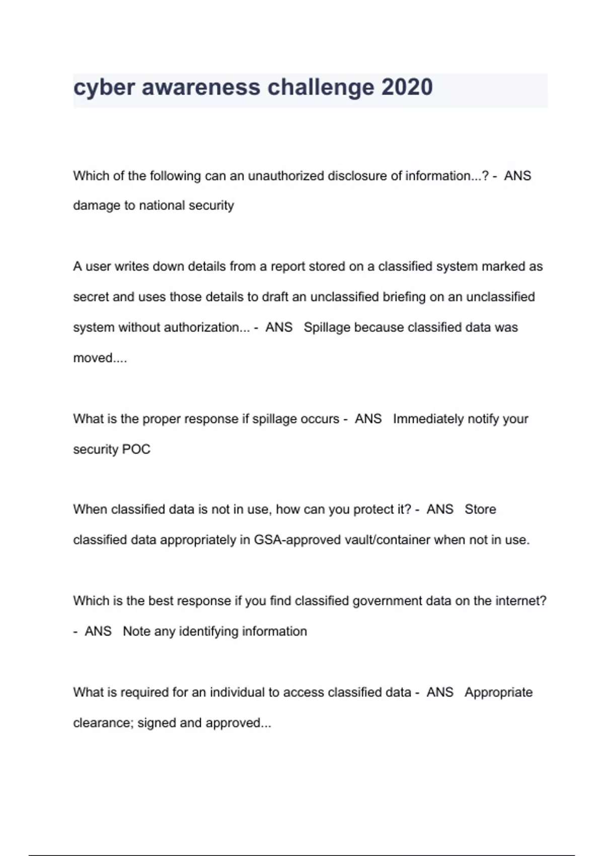 cyber awareness challenge 2023 QUESTIONS & ANSWERS ( A+ GRADED 100% VERIFIED)