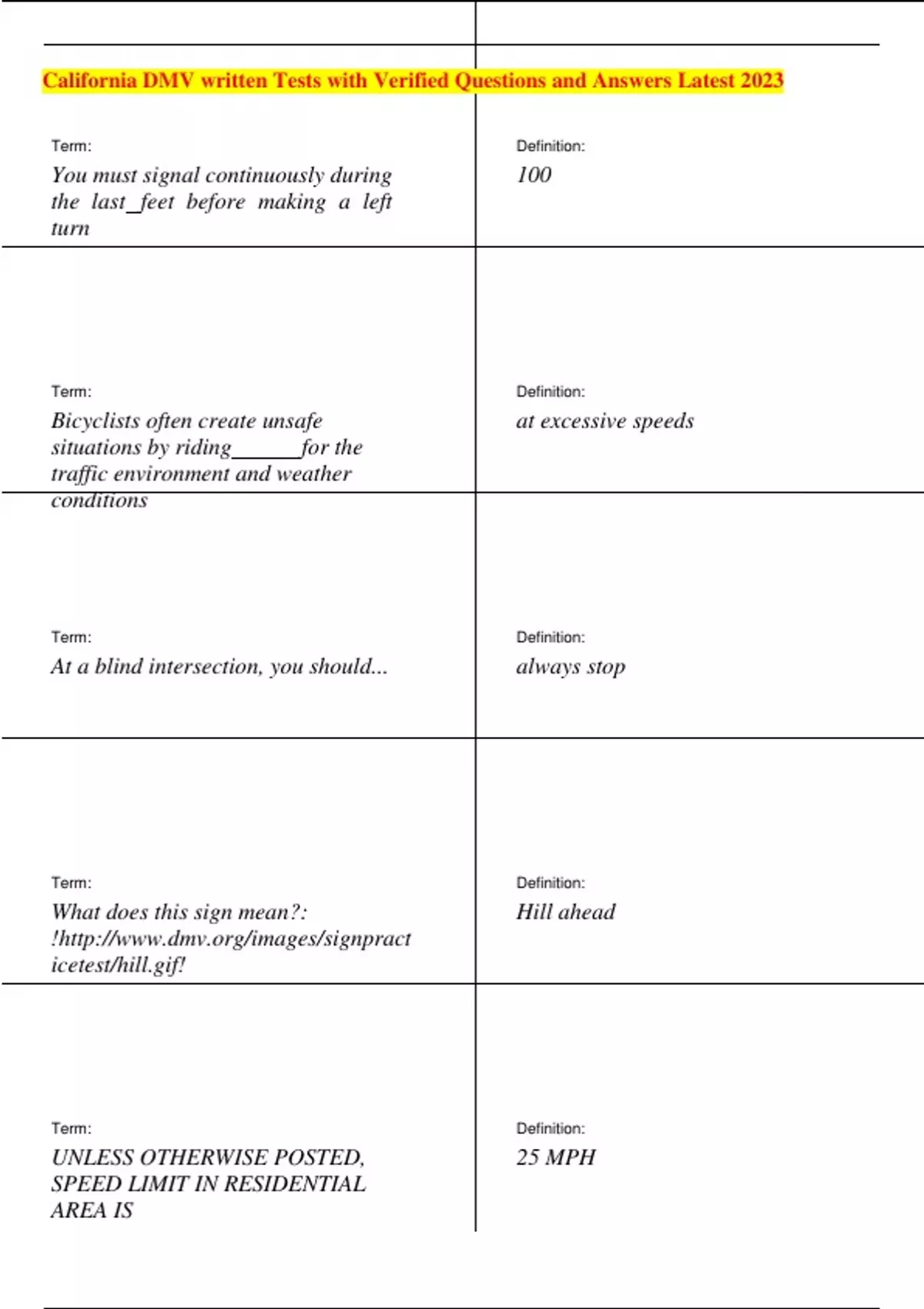 California DMV written Tests with Verified Questions and Answers Latest 2023