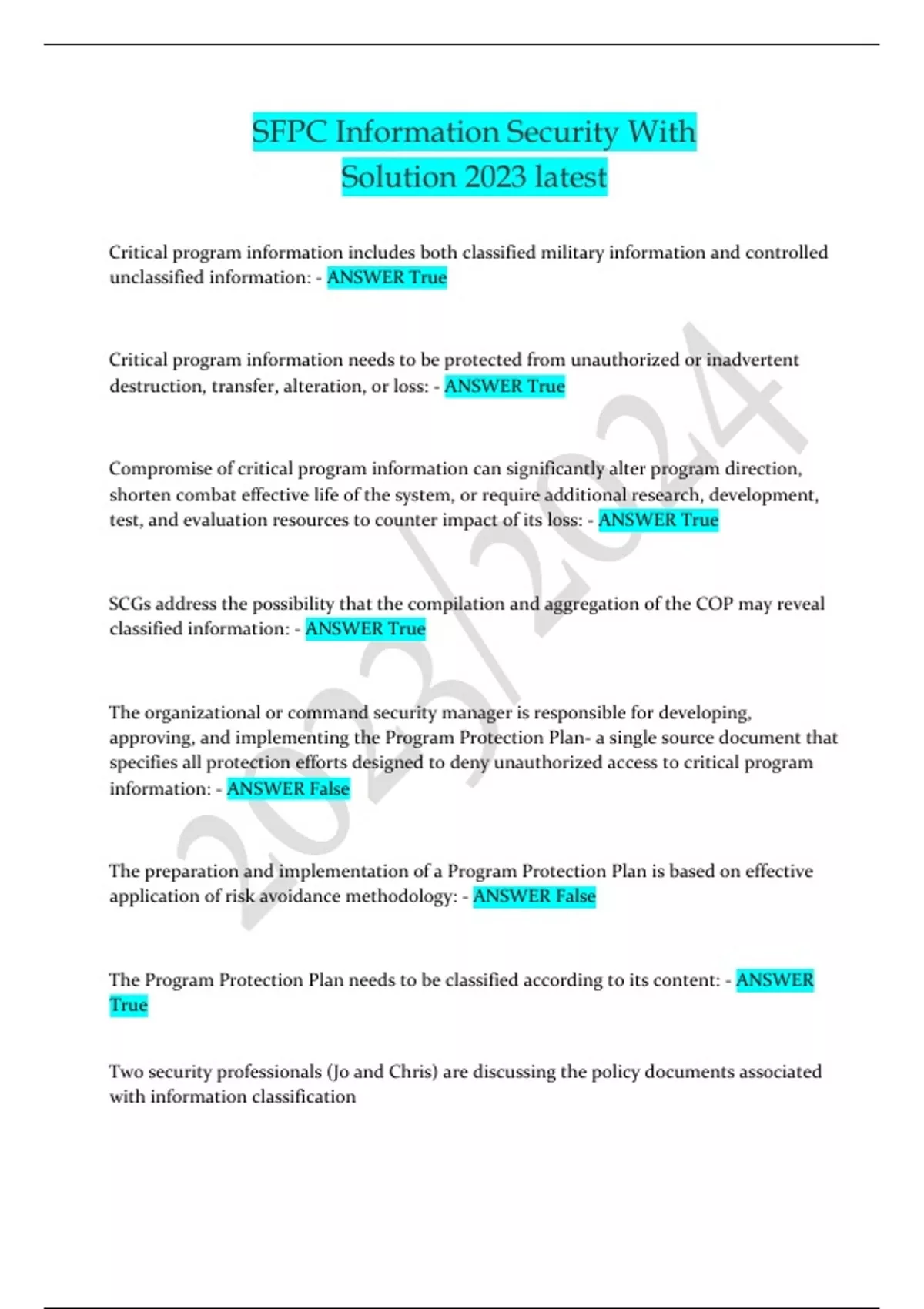SFPC Information Security With Solution 2023 latest