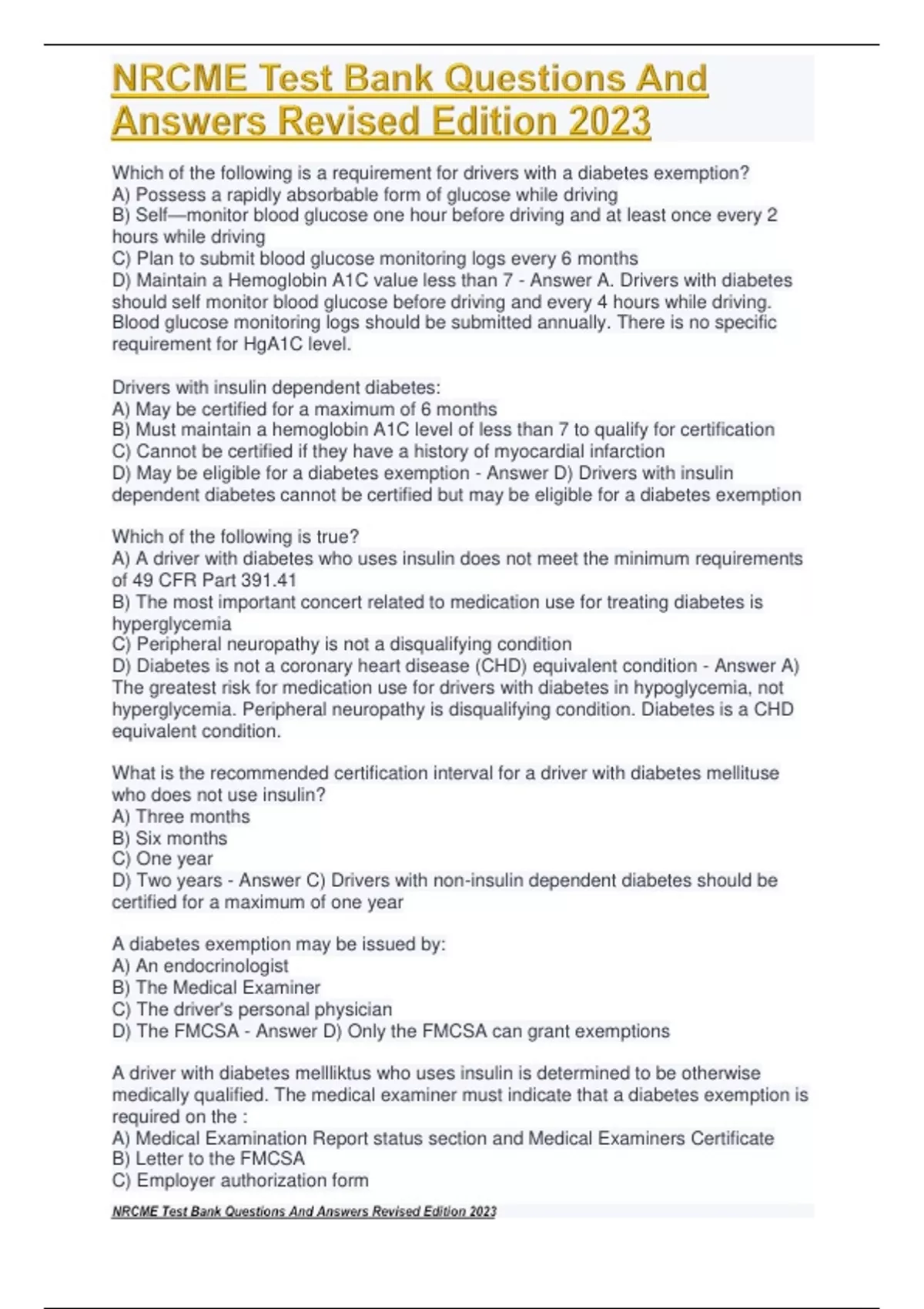 NRCME Test Bank Questions And Answers Revised Edition 2023