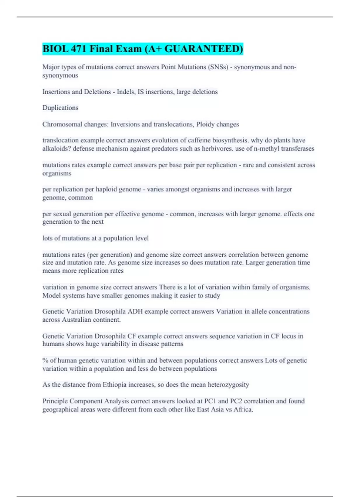 BIOL 471 Final Exam (A+ GUARANTEED)