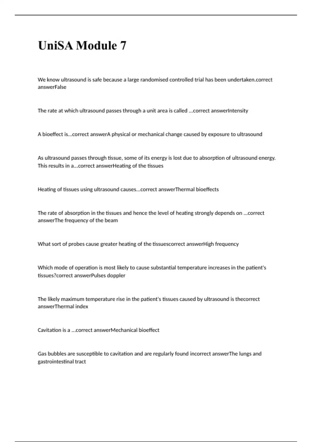 We know ultrasound is safe because a large randomised controlled trial has been undertaken. False The rate at which ultrasound passes through a unit area is called ... Intensity A bioeffect is... A physical or mechanical change caused by exposure to ultrasound As ultrasound passes through tissue, some of its energy is lost due to absorption of ultrasound energy. This results in a... Heating of the tissues Heating of tissues using ultrasound causes... Thermal bioeffects The rate of absorption in the tissues and hence the level of heating strongly depends on ... The frequency of the beam What sort of probes cause greater heating of the tissues High frequency Which mode of operation is most likely to cause substantial temperature increases in the patient's tissues? Pulses doppler The likely maximum temperature rise in the patient's tissues caused by ultrasound is the Thermal index Cavitation is a ... Mechanical bioeffect Gas bubbles are susceptible to cavitation and are regularly found in The lungs and gastrointestinal tract The maximum acceptable mechanical index (MI) is considered to be 1.9 The rate at which acoustic energy is transmitted into the medium is the acoustic Power Ultrasound intensity varies both with depth and across the beam at any given depth True
