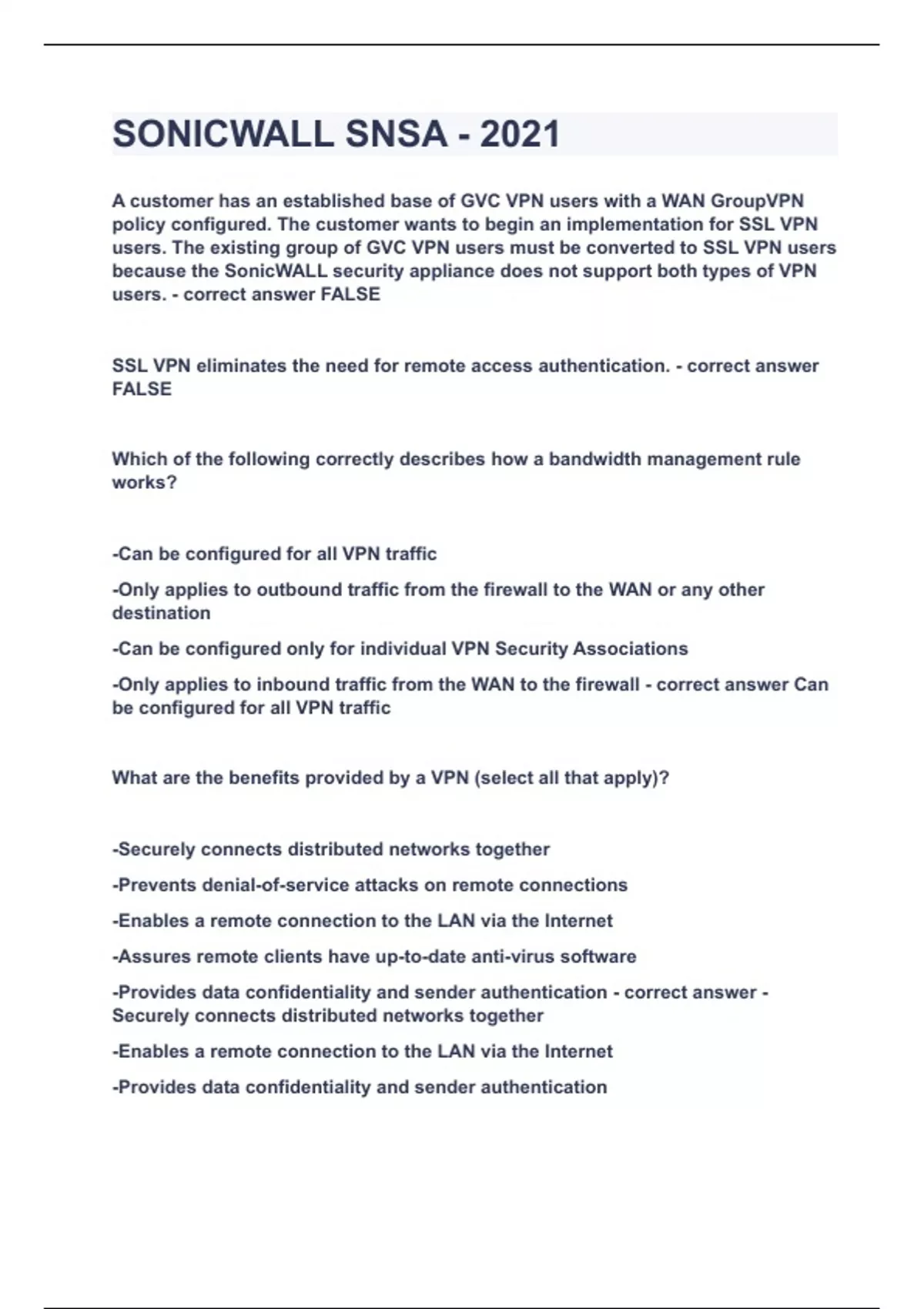 SONICWALL SNSA - 2021|UPDATED&VERIFIED|100% SOLVED|GUARANTEED SUCCESS