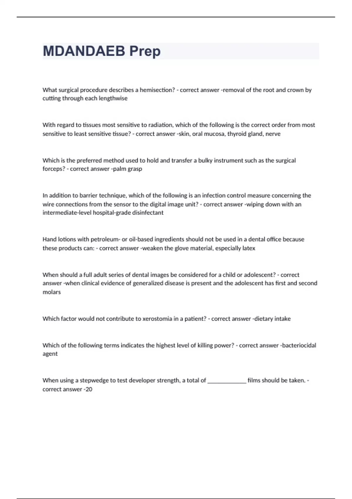 MDANDAEB Prep exam 2023 with 100% correct answers