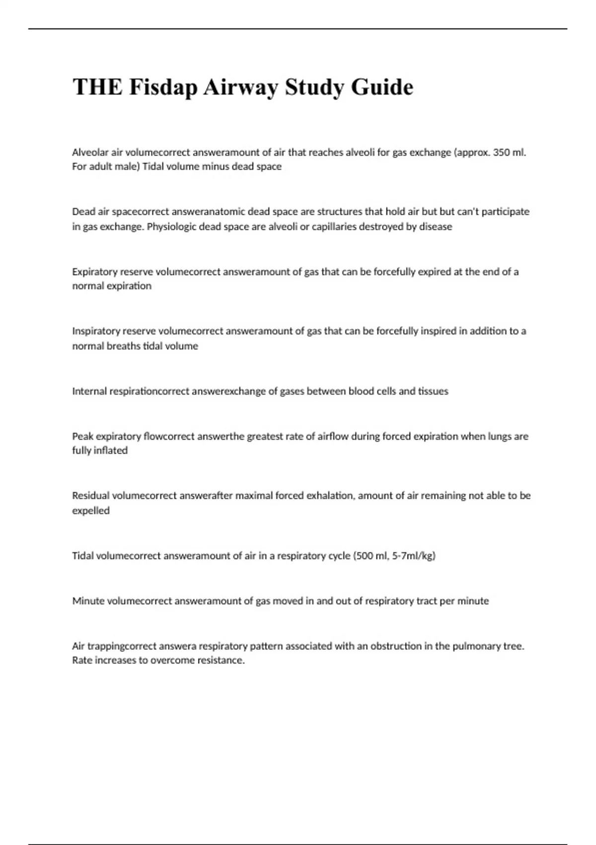 THE Fisdap Airway Study Guide questions with complete solutions