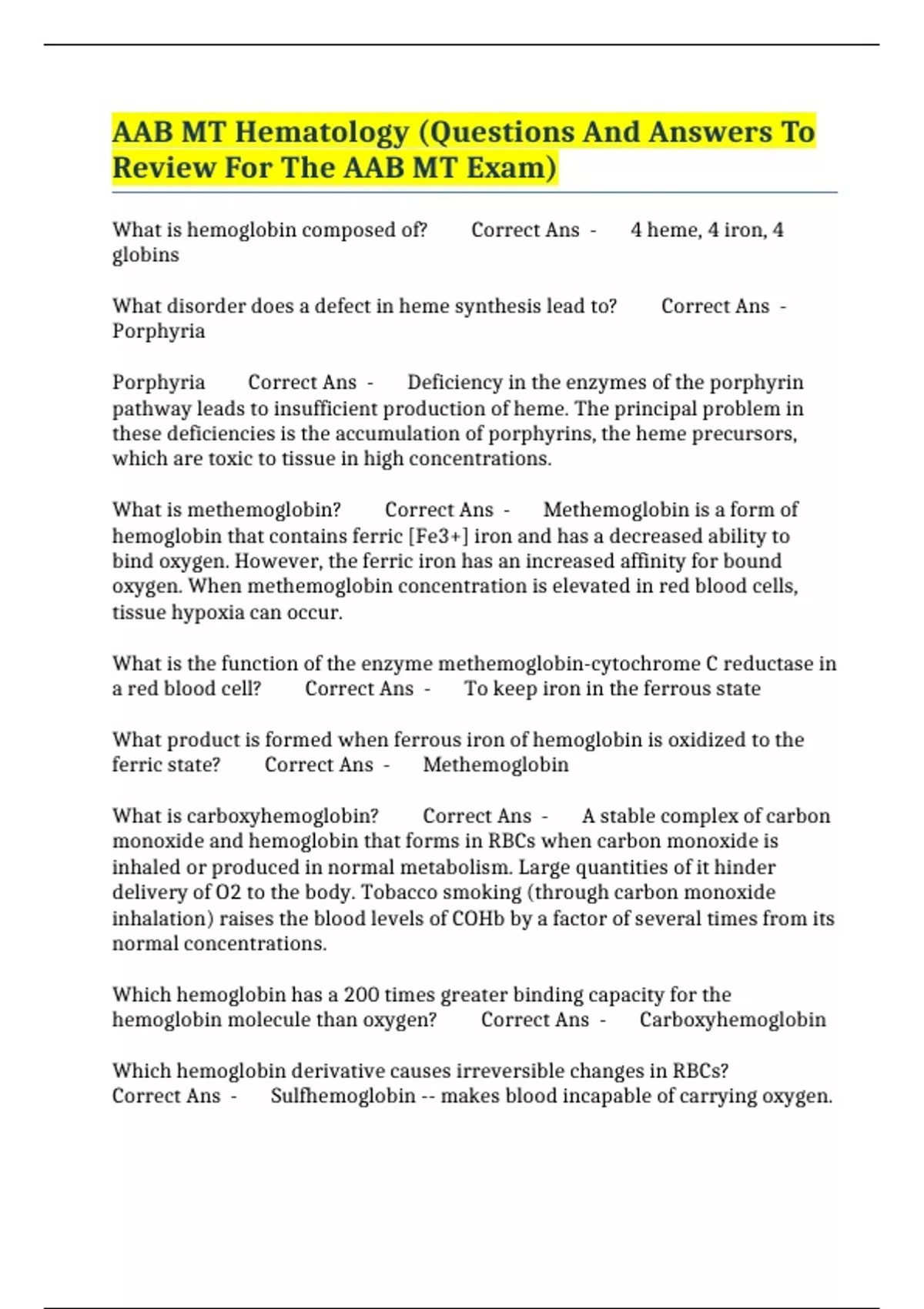 What is methemoglobin? Correct Ans - Methemoglobin is a form of