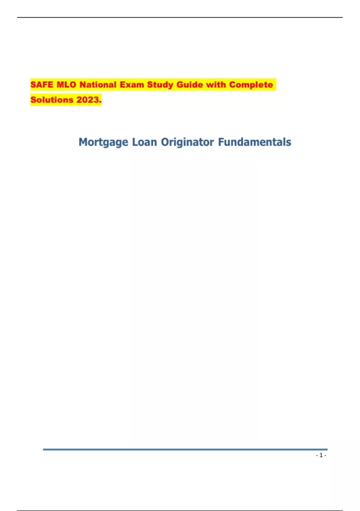 SAFE MLO National Exam Study Guide with Complete Solutions 2023.