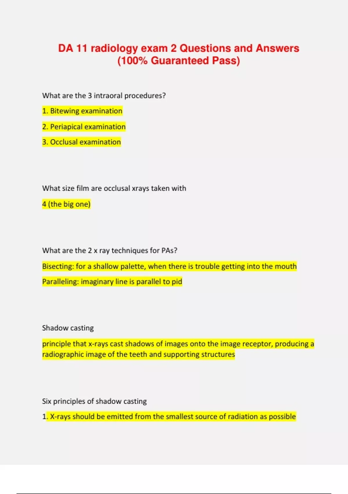 DA 11 radiology exam 2 Questions and Answers (100% Guaranteed Pass)