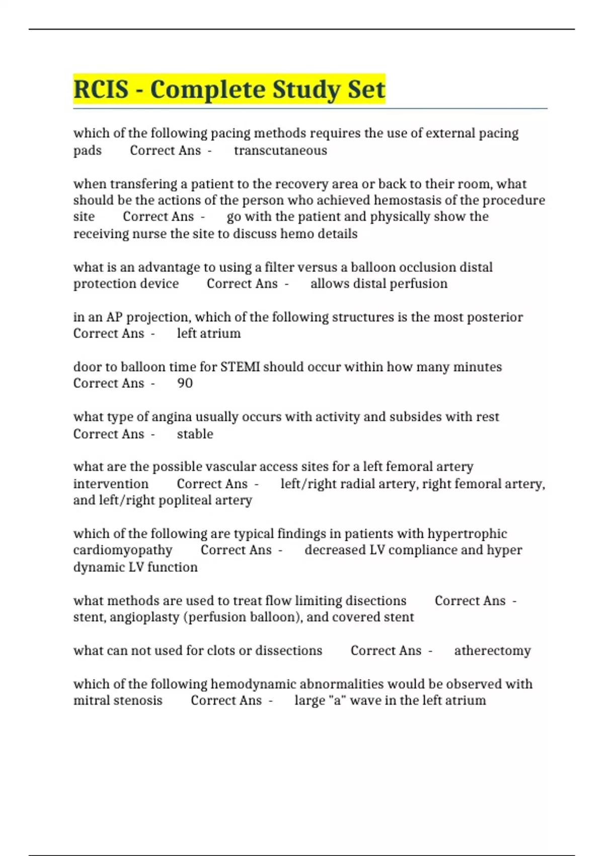 intervention Correct Ans - left/right radial artery, right femoral artery,